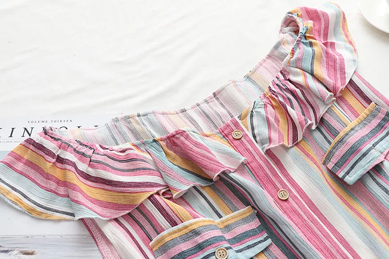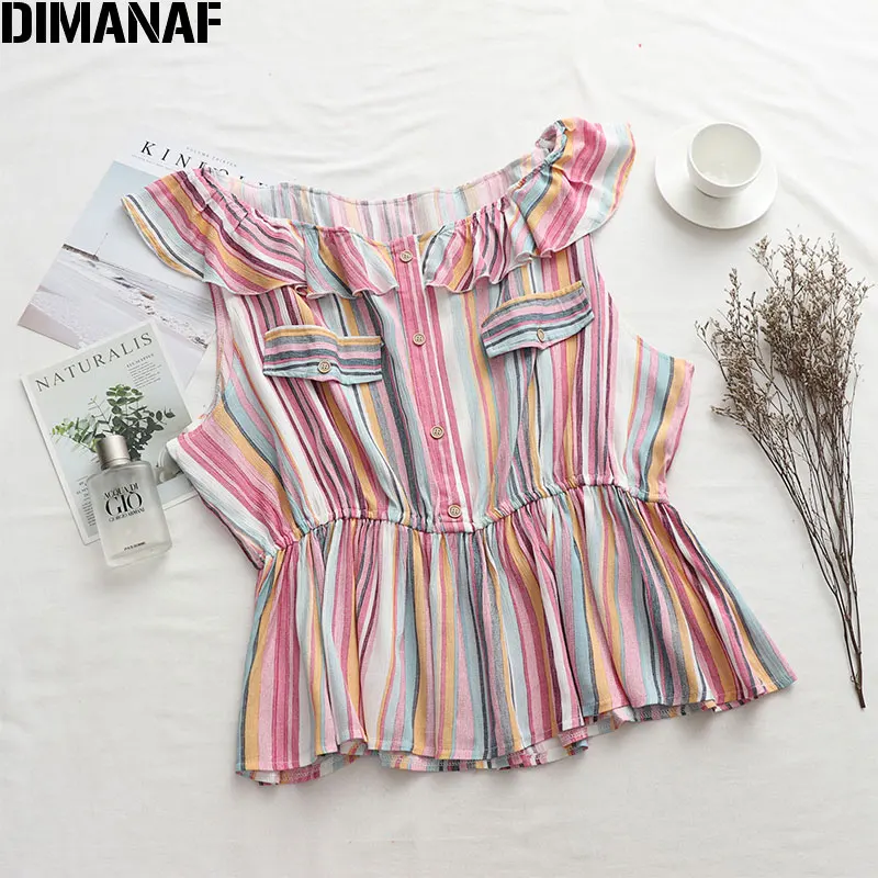 Sale DIMANAF 2020 Plus Size Women T-Shirt Female Lady Loose Rainbow Striped Print Ruffles Patchwork Buttons Tops Large Size L-4XL