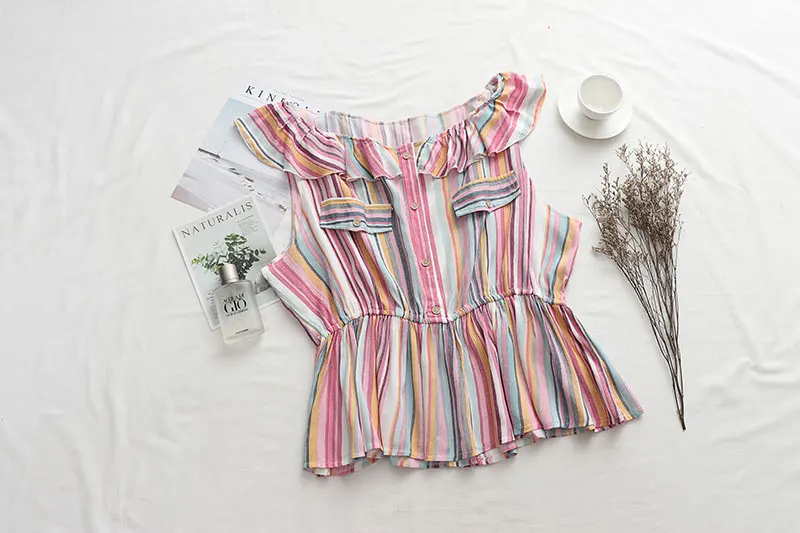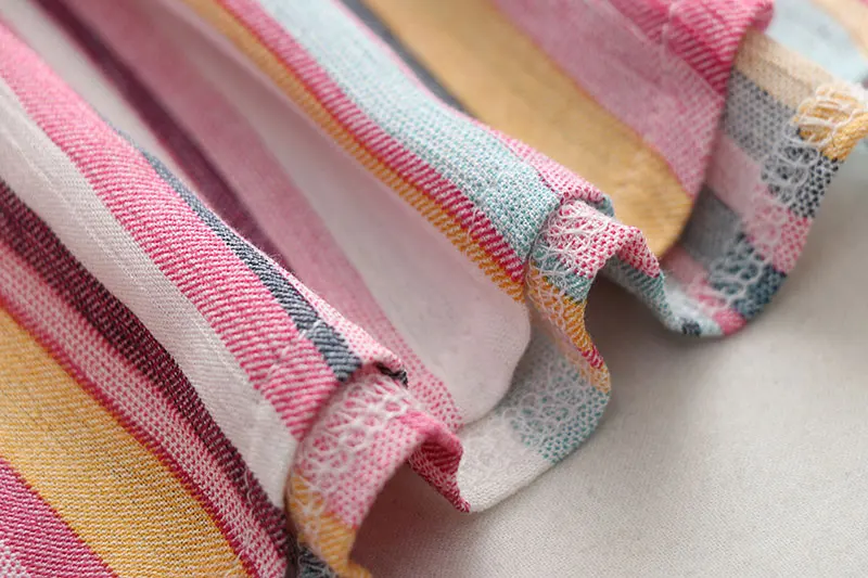 Images of DIMANAF 2020 Plus Size Women T-Shirt Female Lady Loose Rainbow Striped Print Ruffles Patchwork Buttons Tops Large Size L-4XL :