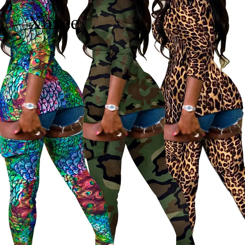 Sale Plus Size Camo Leopard Two Piece Set Women Rave Festival Top Pant Fall 2 Piece Matching Sets Sexy Birthday Club Outfits