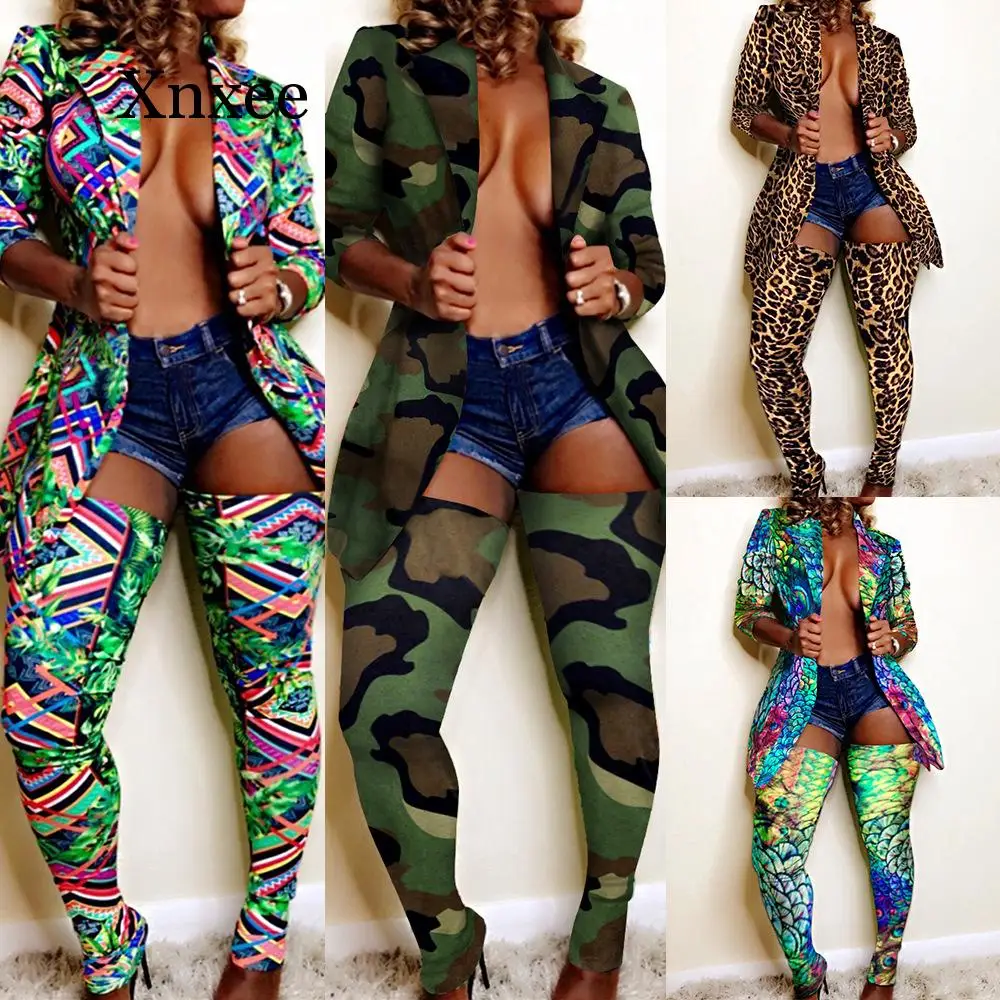Images of Plus Size Camo Leopard Two Piece Set Women Rave Festival Top Pant Fall 2 Piece Matching Sets Sexy Birthday Club Outfits :