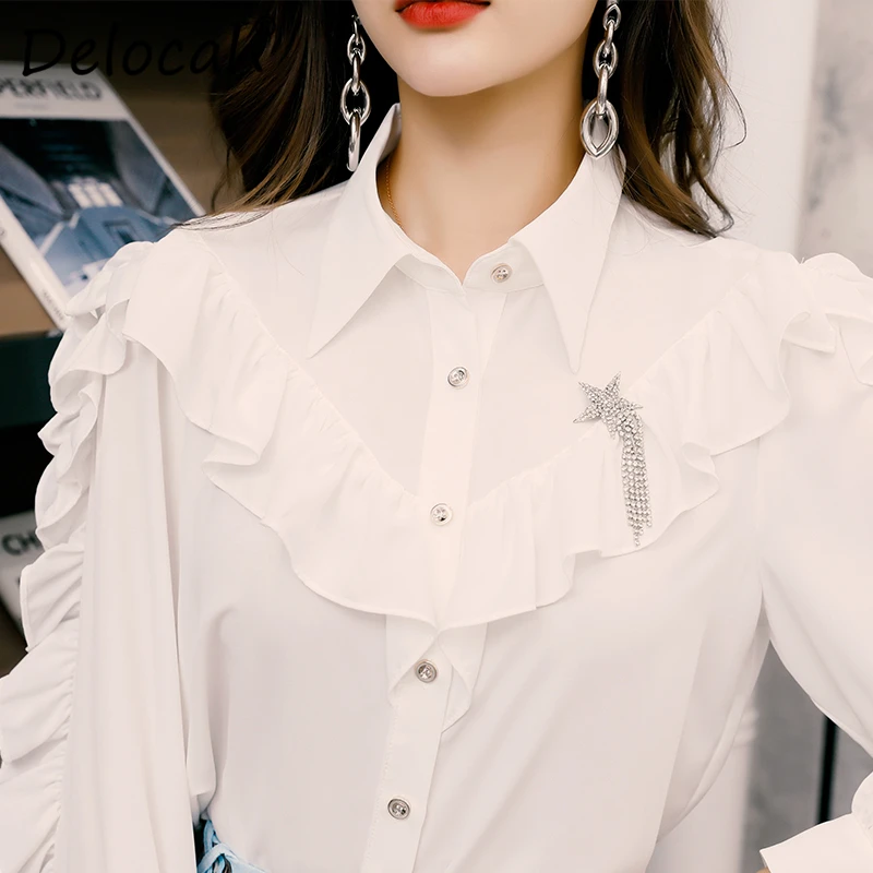 Get this Delocah Autumn Women Suits Runway Fashion Designer Long Sleeve Gorgeous Ruffles Blouses + Printed Ladys Skirt Two Pieces Sets with limited time discount by pressing the button below