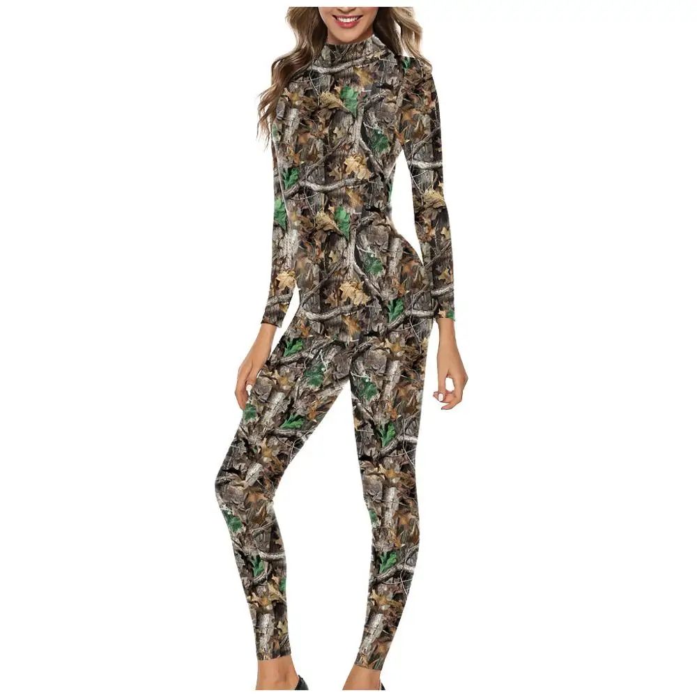 Sale Printing Women Jumpsuits Casual Fashion Long Sleeve Tights Turtleneck Zipper Overalls monos de fiesta 2020 Hot Drop Shipping E