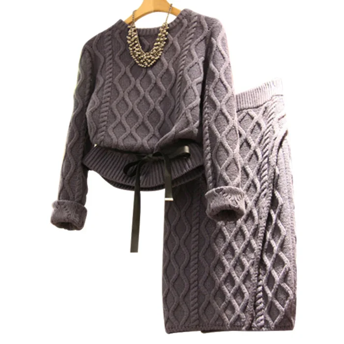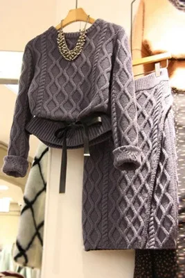 Images of Fall 2020 New Women Knitted Jacket+Fashion Casual Bag Hip Skirt Set 2 Piece Sets Womens Outfits :