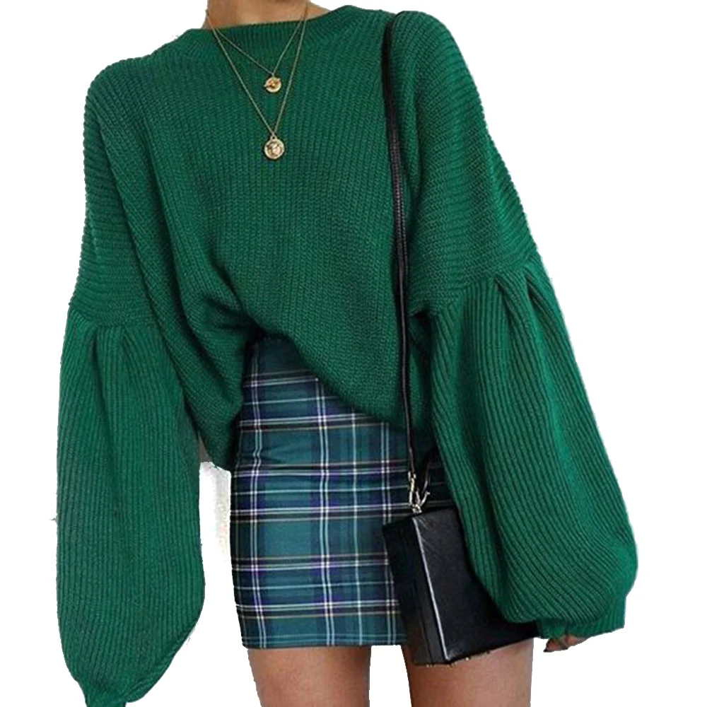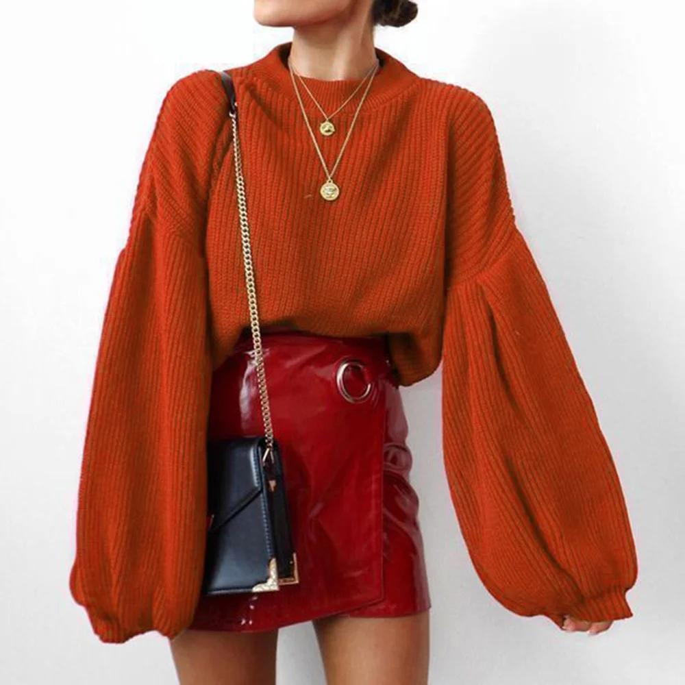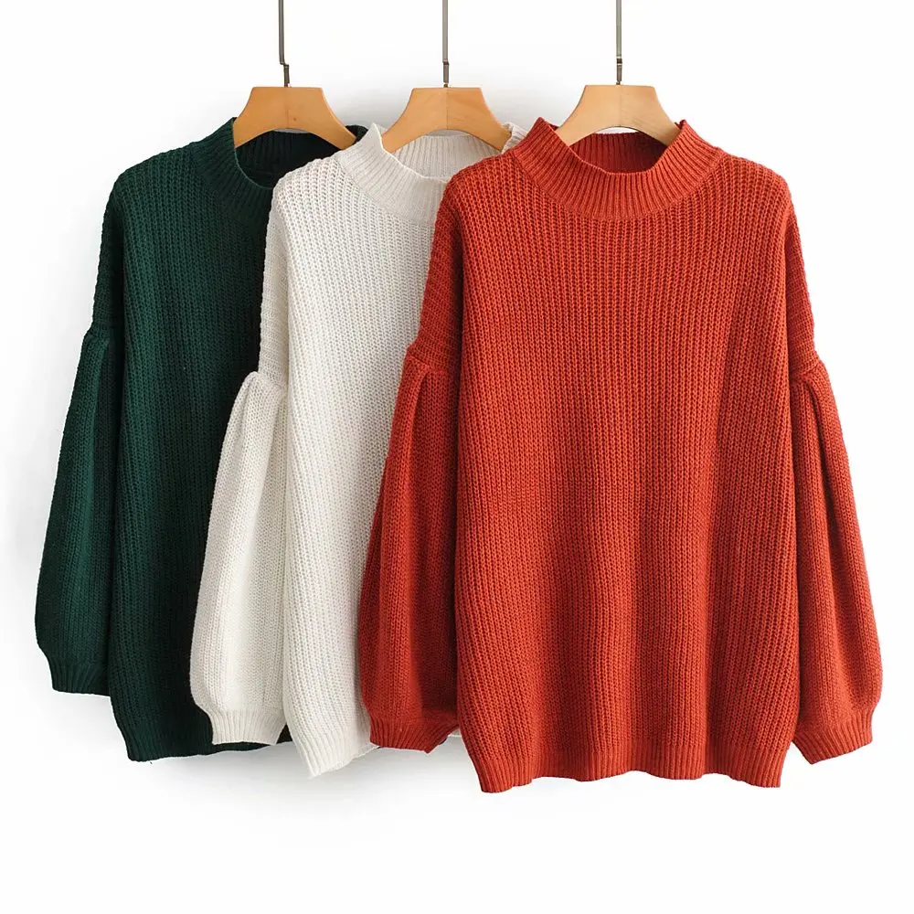 Images of 2019 high street casual sweater women solid lantern sleeve winter pullover knitted ropa mujer pull femme nouveaute 2019 :